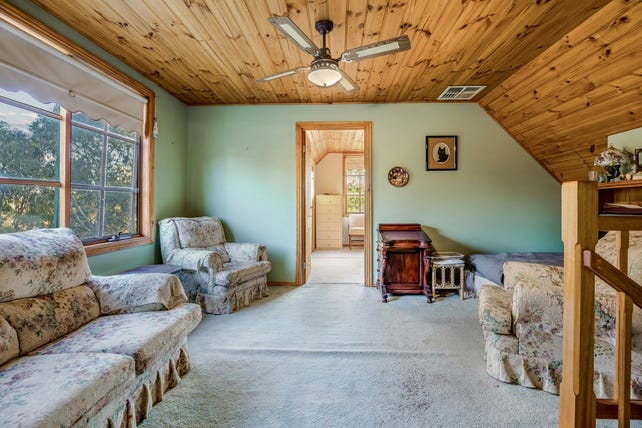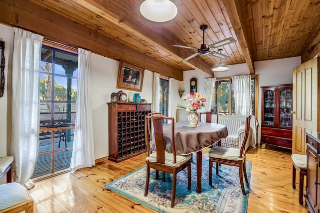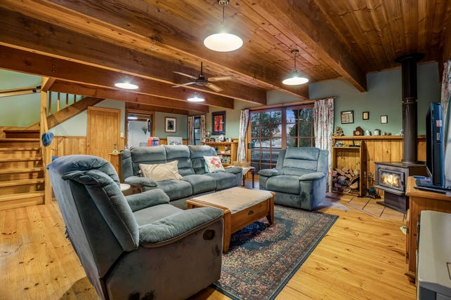 • The split-level home features a wraparound verandah and classic pine-lined ceilings and floors, adding warmth and authenticity.