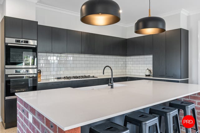Step inside to discover a spacious open-plan living, dining and kitchen zone featuring polished concrete floors, large windows, and effortless flow to the expansive deck and alfresco area. The kitchen impresses with sleek black cabinetry, stone benchtops, a feature brick island, quality stainless steel appliances including 900mm gas cooktop and twin wall ovens, and a large walk-in pantry.