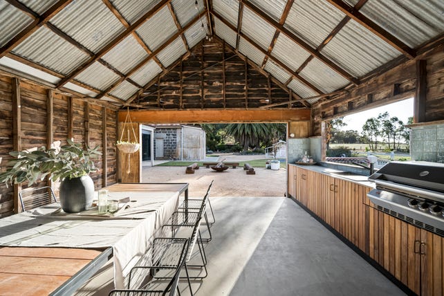Standing proudly on approx. 9.7Ha (24 acres), the unique residence is a salute to the farming family who created it, and the current custodians (the second owners), who have made a stunning residence. Their dedication to retaining the country aesthetic is apparent in every aspect. Nestled amidst scenic farmlands with seasonal Hargreaves Creek frontage, the property is a haven for those seeking a respite from the city or a semi-rural lifestyle in park-like surroundings.