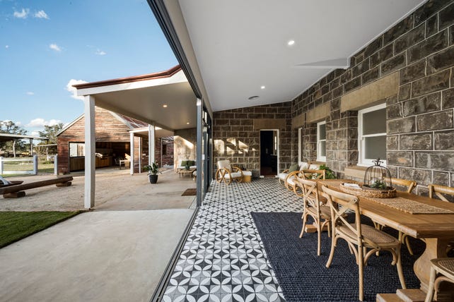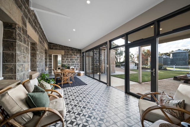 Cited as being of heritage significance to the City of Greater Bendigo Council, this masterfully restored bluestone farmhouse, circa 1920-30, blends traditional characteristics with modern-day conveniences.