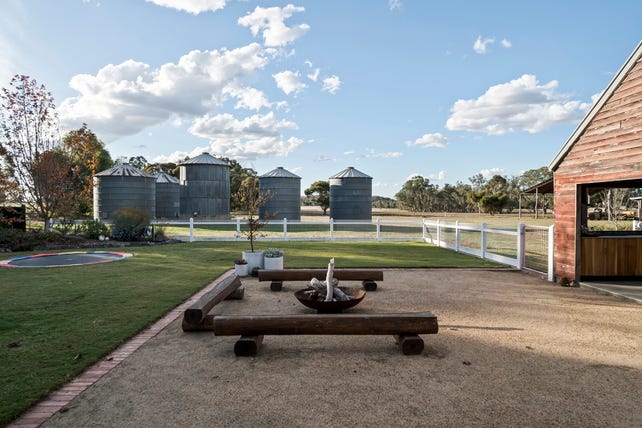 The property features a store room/cellar, a robust steel 8m x 15m powered shed/workshop, a hay shed, grain silos and a disused barn, ready to assist the agricultural enthusiast. Added features: rustic weatherboard garage/home gym/studio, two carports, town water, 45K ltrs water tanks, classic woven-wire house yard fencing, an orchard and auto garden reticulation.