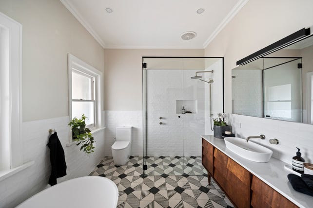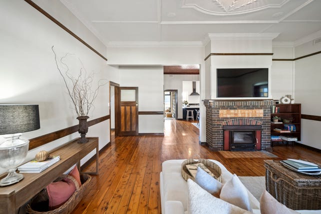 A traditional hallway beautifully connects the bedrooms and living areas. The four generous bedrooms share the oversized bathroom featuring a 1200mm shower, a wall-mounted vanity, a heated floor and a freestanding egg-shaped bath surrounded by white subway wall and encaustic-look floor tiles. The formal lounge features a double-sided brick fireplace, a combustion wood heater insert and French doors to the side verandah. It abuts the spacious dining area, creating an open-style flow into the classically designed kitchen. Cullinarians will love the 1100mm Smeg cooker ( induction cooktop, twin ovens, grill and warming drawer), the integrated dishwasher, bespoke stone-topped cabinetry and the walk-through butler's pantry to a mudroom with easy access from the carport and a large, storage-rich laundry. Warm winter sunshine floods the stunning rear sunroom/living area featuring a wall of north-facing windows and stacking glass doors. It is the perfect place for summer dining and relaxing or snuggling on winter mornings with a coffee while watching the kids, pets or abundant birdlife enjoying the rear gardens.