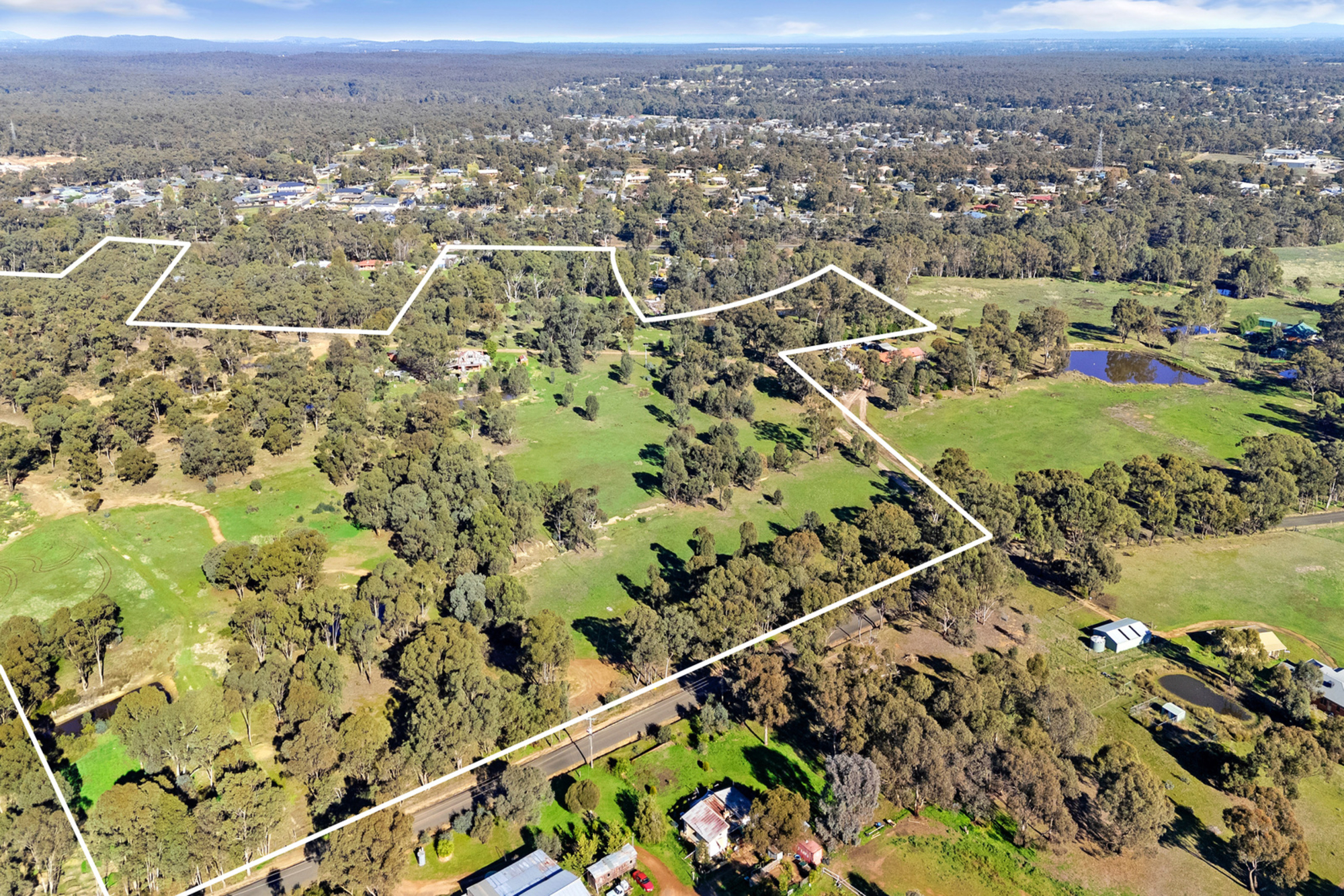 The land is currently being considered for rezoning and is included in the Maiden Gully North Precinct Structure Plan. The property contains multiple residential dwellings, large, cleared areas, meandering seasonal gullies and creek, native vegetation, and elevated sections with scenic views back towards the Maiden Gully township.
