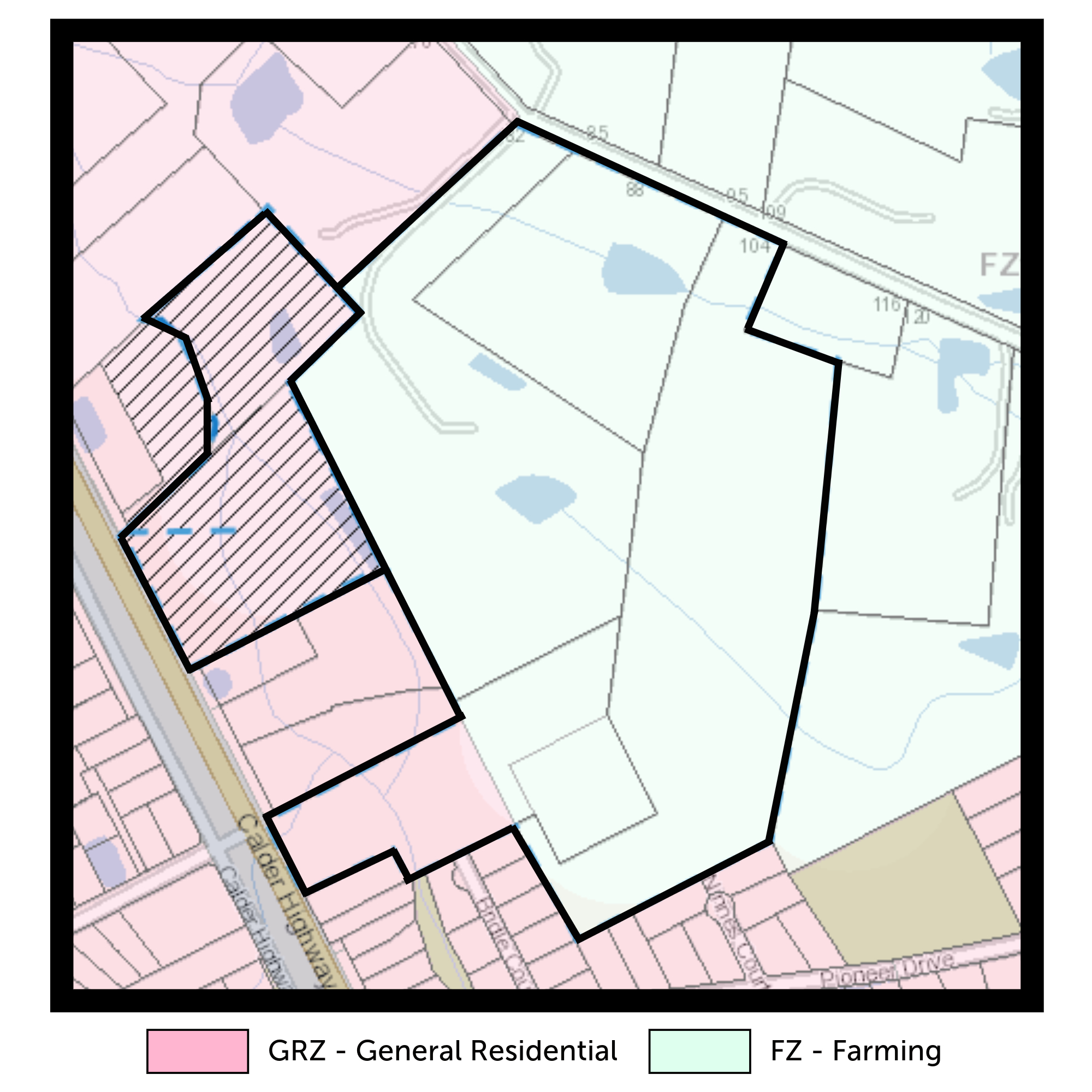 Located 7 Kilometres west of the Bendigo CBD 30.50 Ha (approx.) Comprising 626 Calder Hwy (5.276 Ha) 604 Calder Hwy (4.145 Ha) 82 Durstons Road (8.276 Ha) 88 Durstons Road (4.076 Ha) 104 Durston Road (9.106 Ha) This presents an enticing prospect for developers and investors looking to capitalise on the growing demand for residential property in the area.