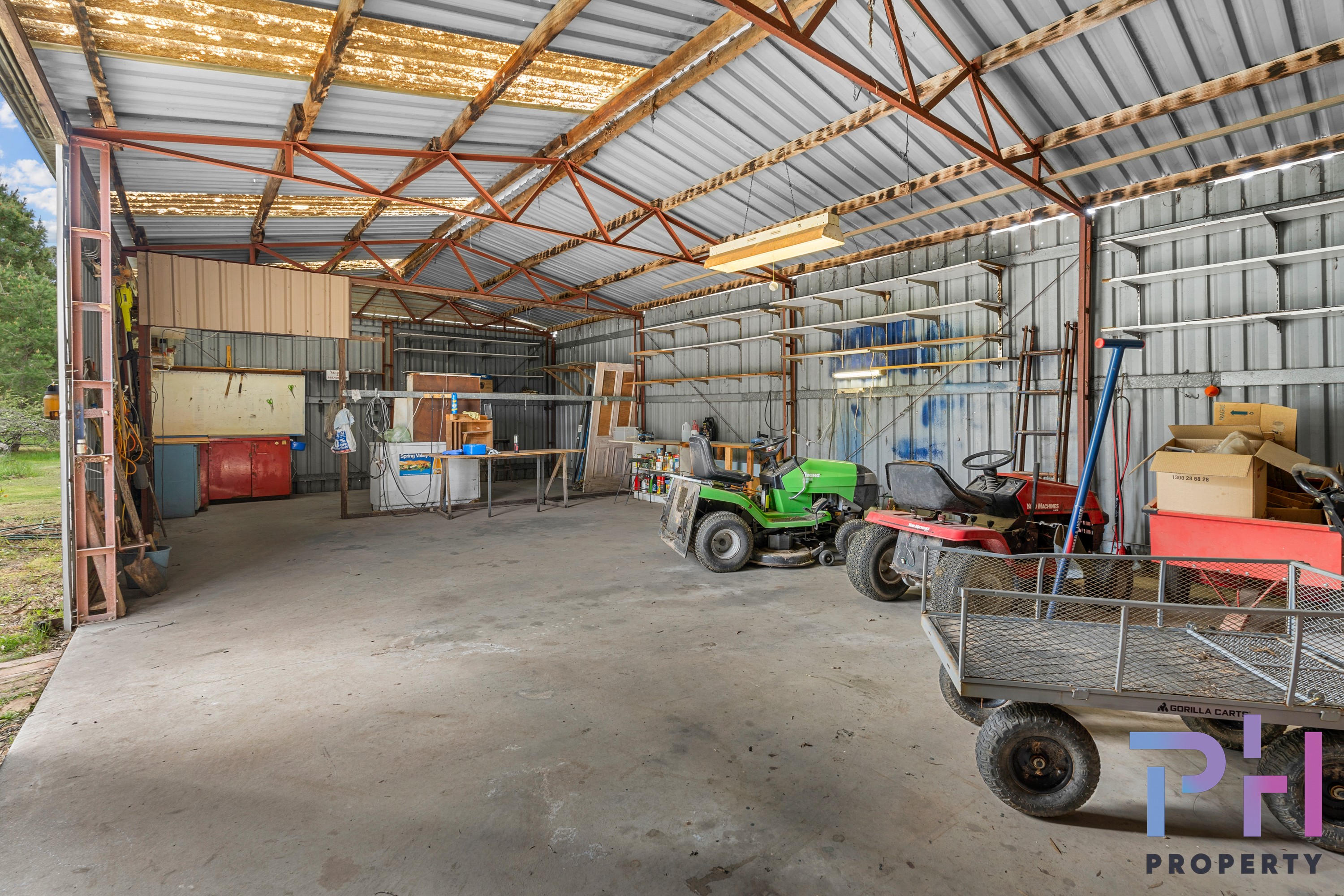 Outside you will find a 6.2m x 9m colourbond shed with incorporating an additional 6.2m x 2.7m storage area, complete with concrete floor, power, shelving and benches.